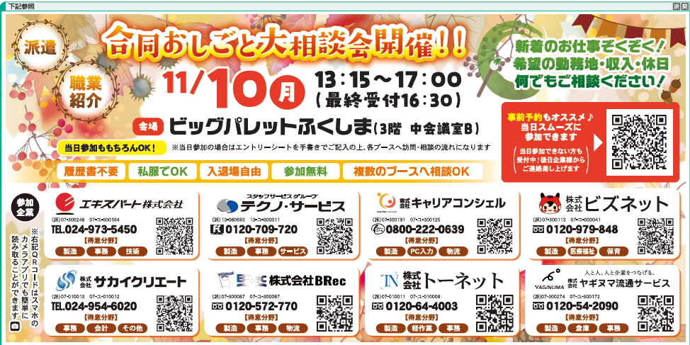 11/10(月)13:15~17:00、ビッグパレットふくしまにて合同説明会が開催されます!