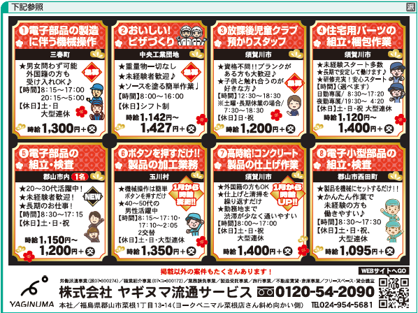 - お仕事説明会が開催されます! 日程:9/11(木) 会場:①ヤギヌマ流通サービス本社 9:00~12:00 ②ミューカルがくと館(練習室4…